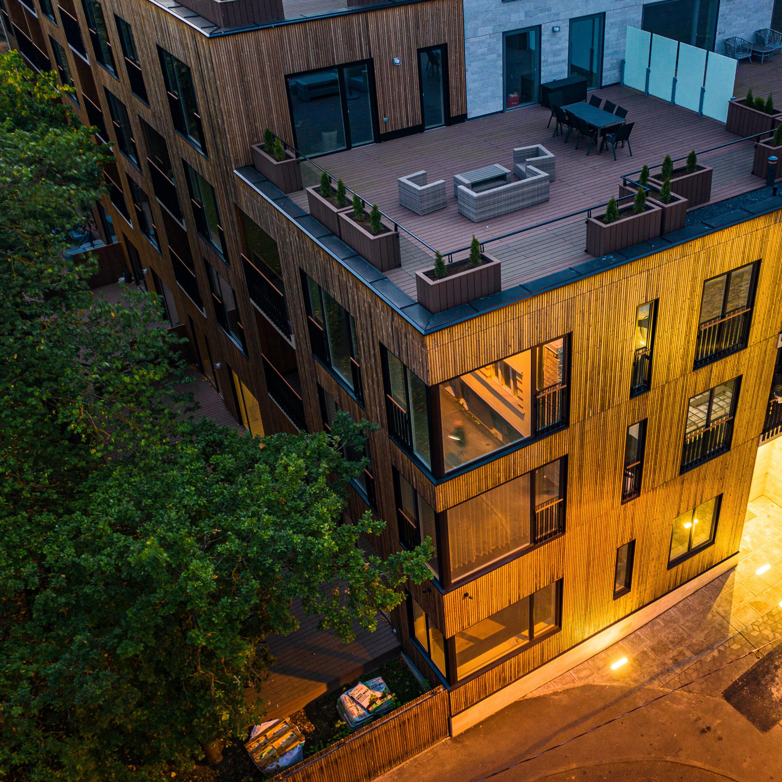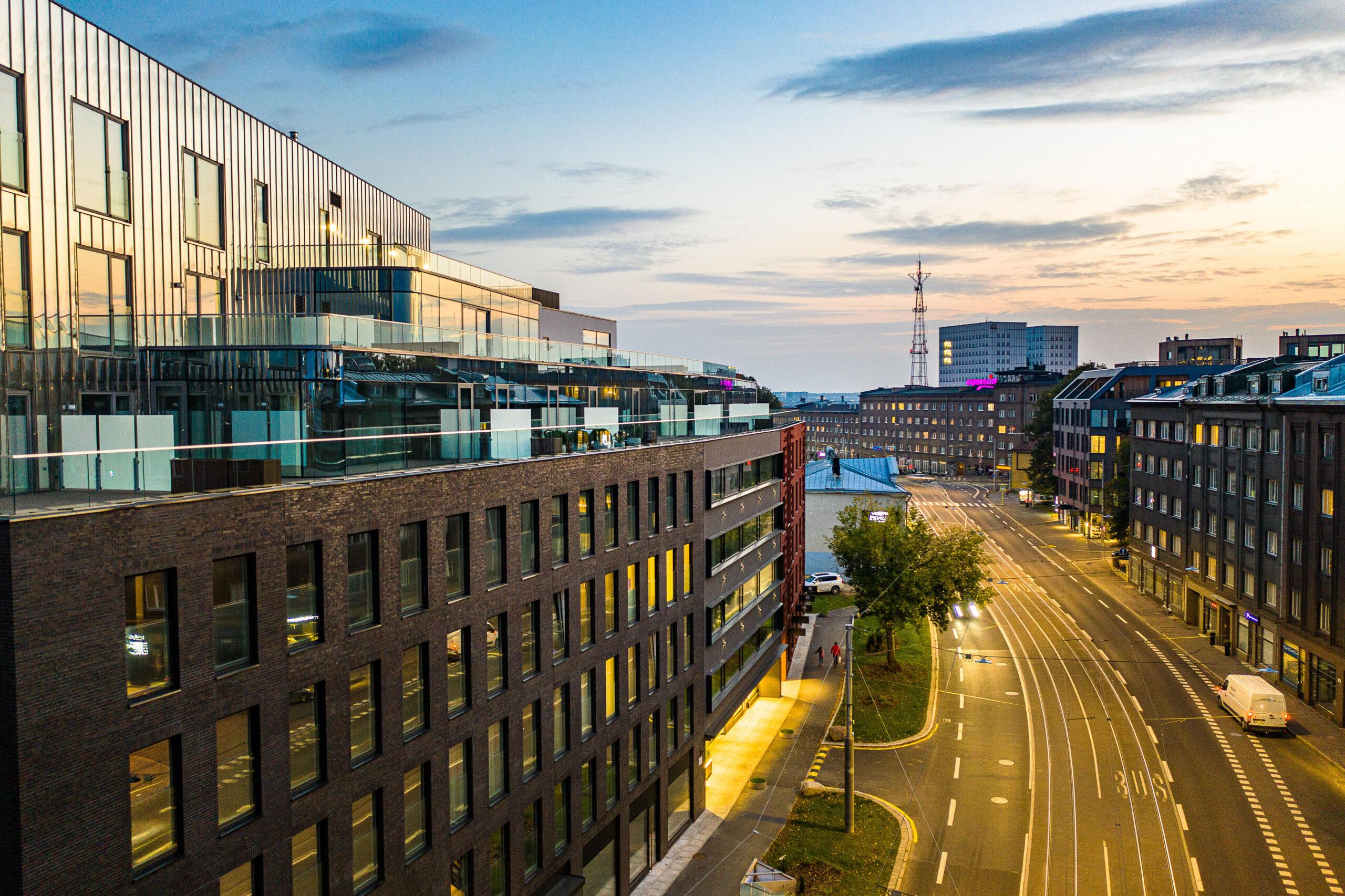 Hoone arhitektuurne vorm järgib linnaruumi ja selle arhitektuurset keelt, rütmi ning materjalikasutust.