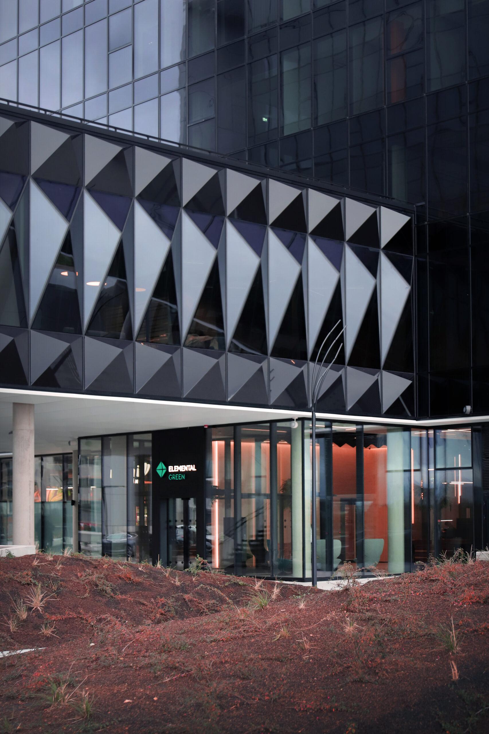Hoone maht, mis on hästi toimiva büroohoone jaoks optimaalne ja ökonoomne, on kujundatud arhitektuurselt elegantseks ja puhtaks. Horisontaalne maht tornmajade vahel koos parameetrilise fassaadisüsteemiga toimib avaliku ühenduse fookuspunktina – see katab ja rõhutab hoone peasissepääse.