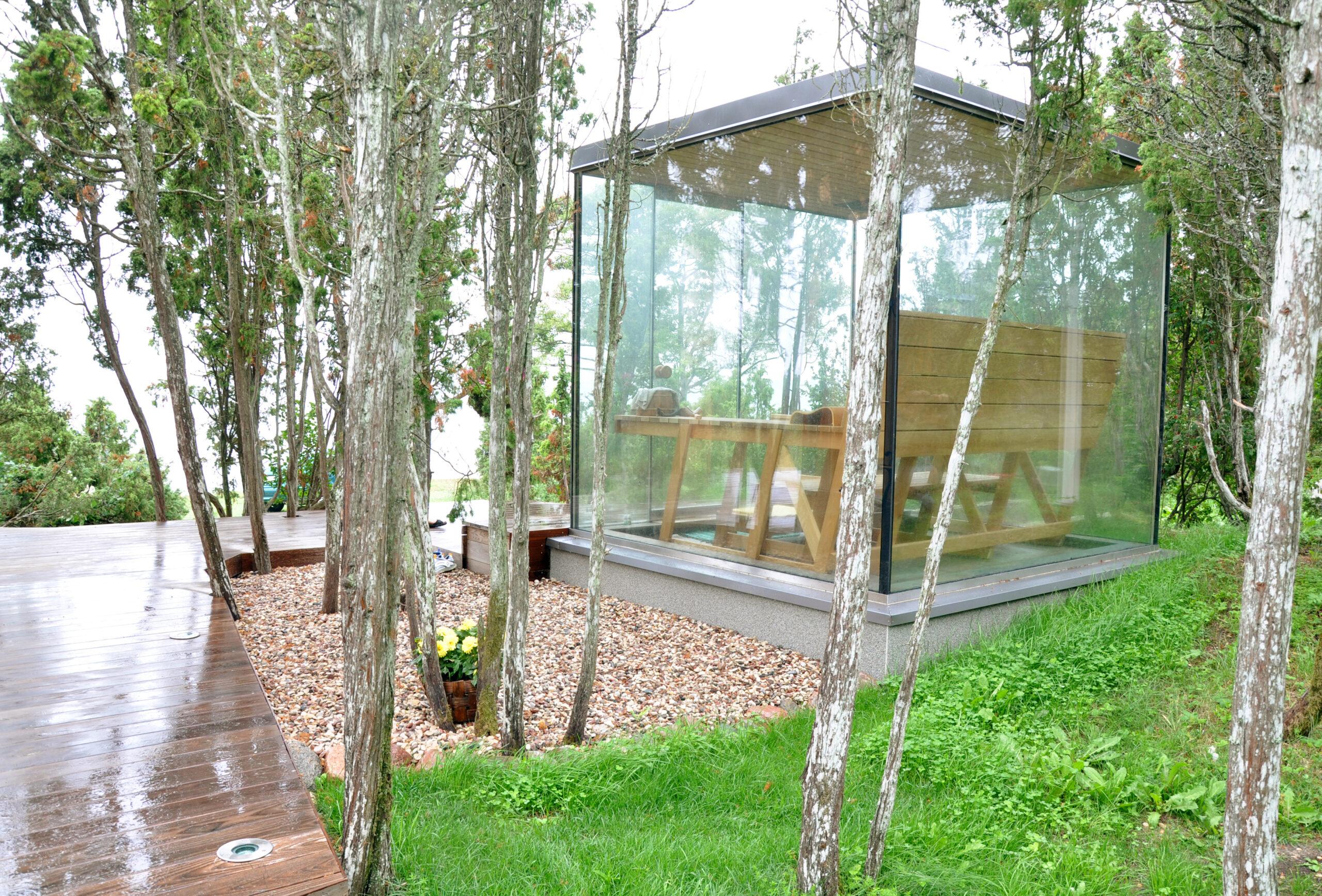 Kandvate klaasist seintega leiliruum on mitmeti eksperimentaalne. Selle loomisprotsessi käigus maandati kõigepealt põhjused, miks hoone sellisel kujul ei toimivat, seejarel leiti koostöös mitmete tehniliste spetsialistidega lahendused, kuidas need ületada, ning lõpuks projekteeriti ja ehitati leiliruum valmis. Idee sellise lahenduse funktsionaalsest toimivusest, mis esialgu rajanes vaid arhitektide sisetundel, leidis reaalsuses kinnitust.