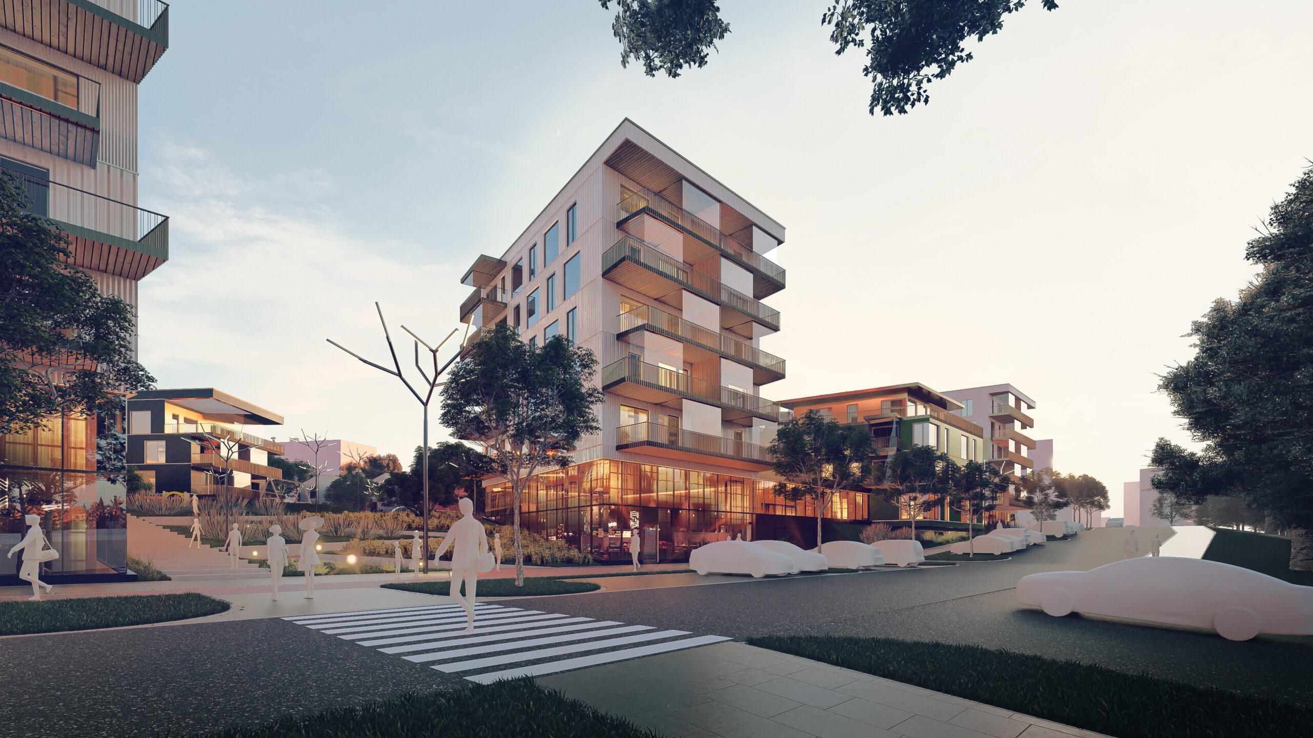 Kvartalis on kolme eri tüpoloogiaga elamut: terrasselamud, hoovimajad ja ridaelamud. Kvartali keskel on suur rekreatiivala, mis silmusena ühendab juurdepääsud kõikide hooneteni ning õuealadeni.