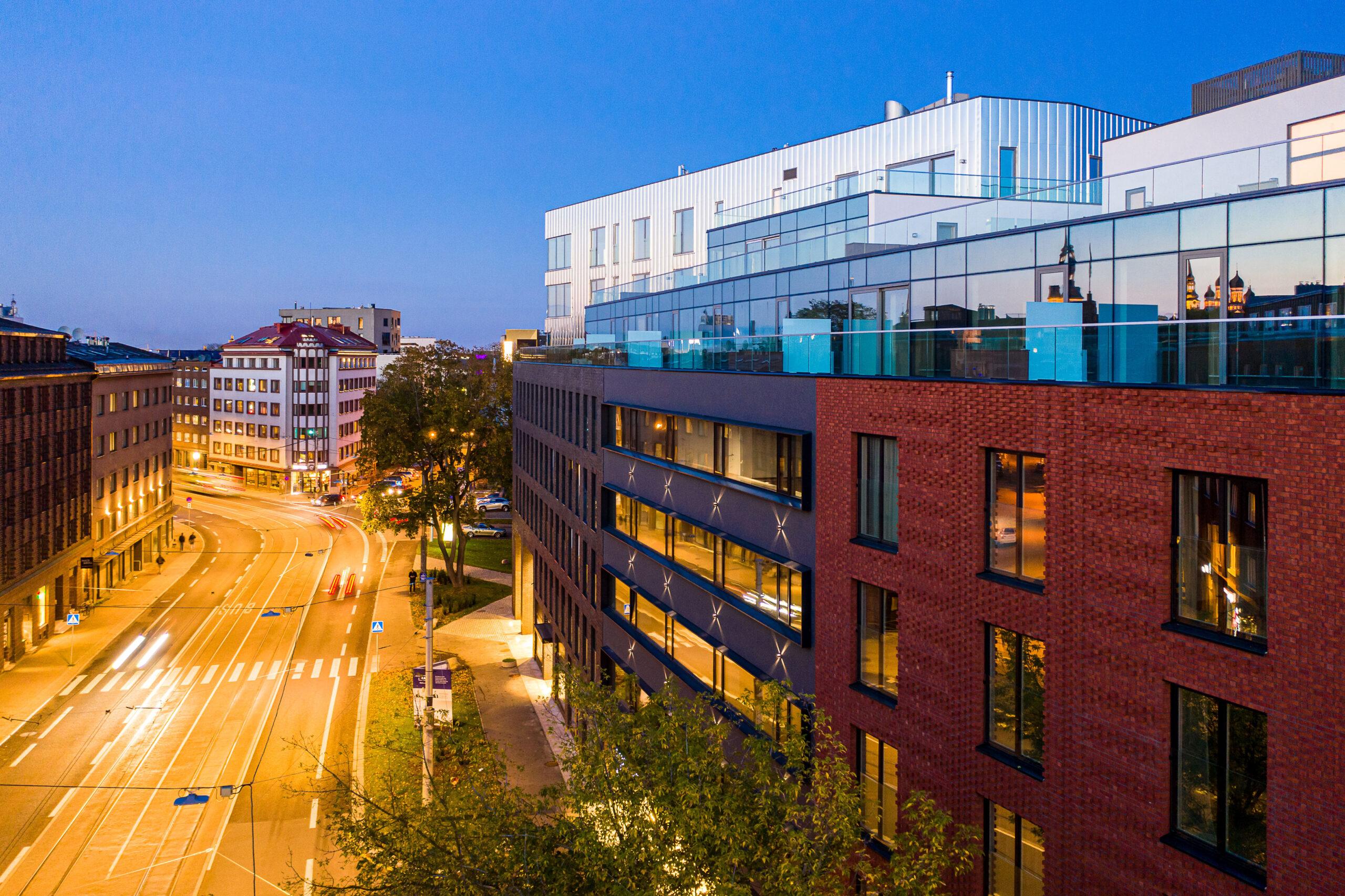 Hoone arhitektuurne vorm järgib linnaruumi ja selle arhitektuurset keelt, rütmi ning materjalikasutust.