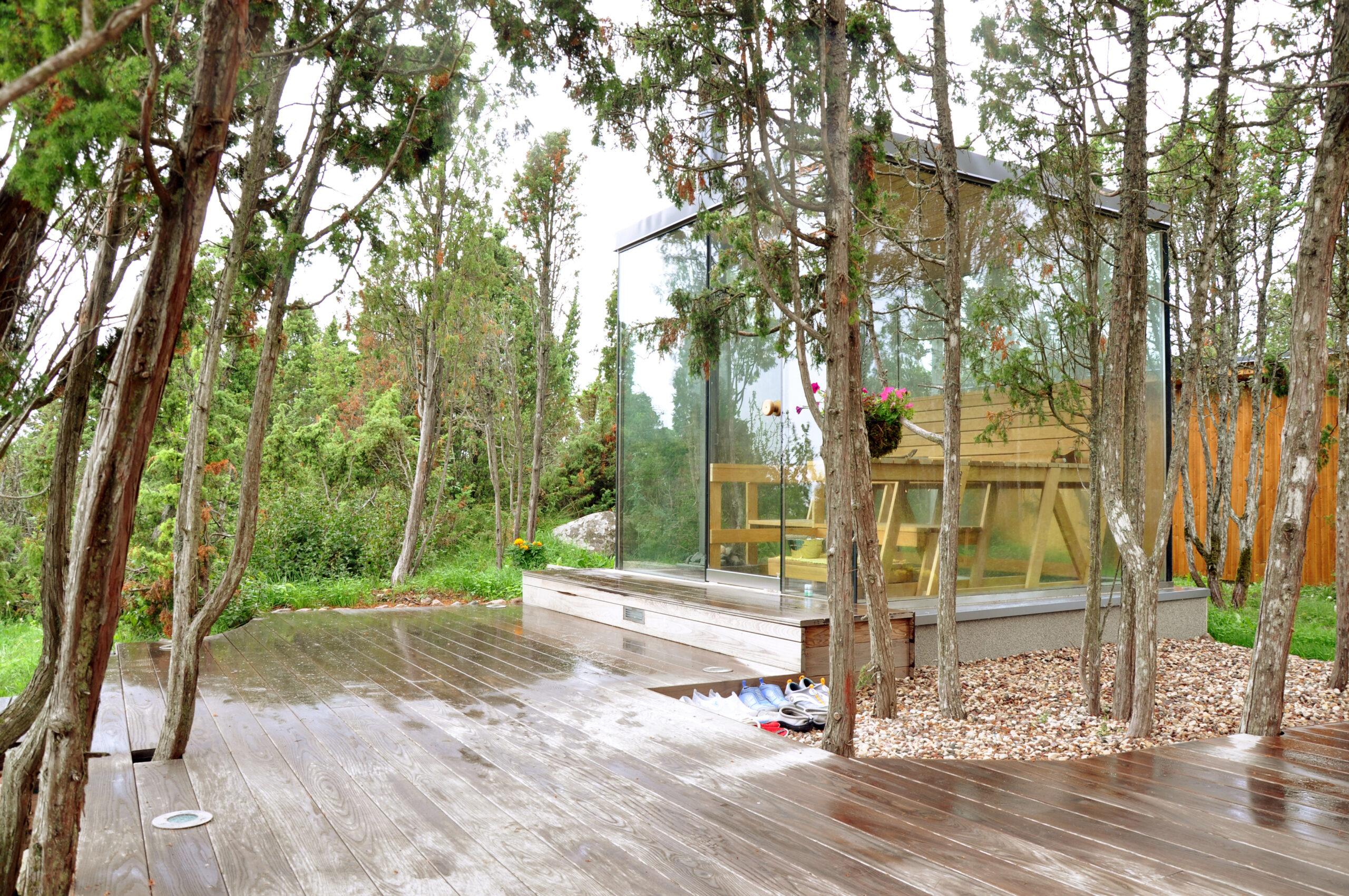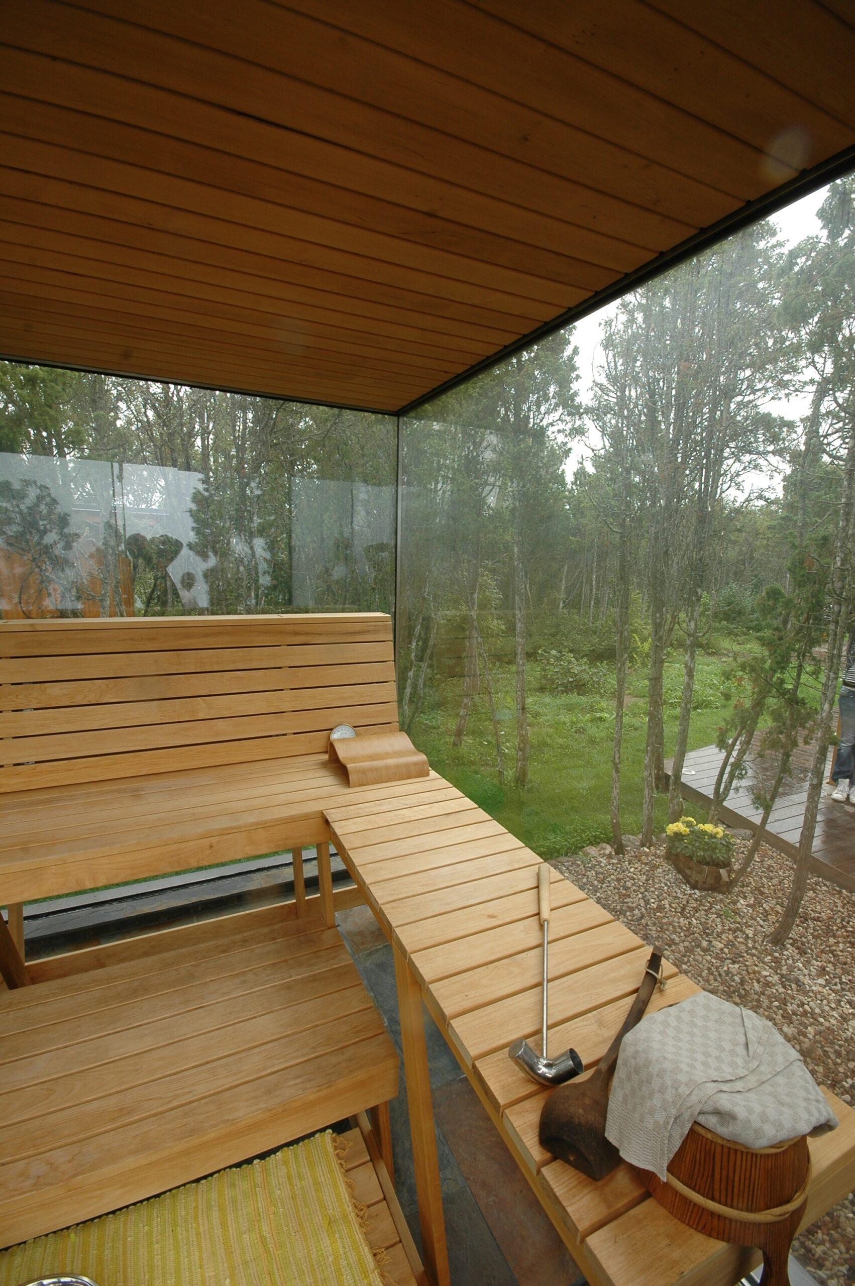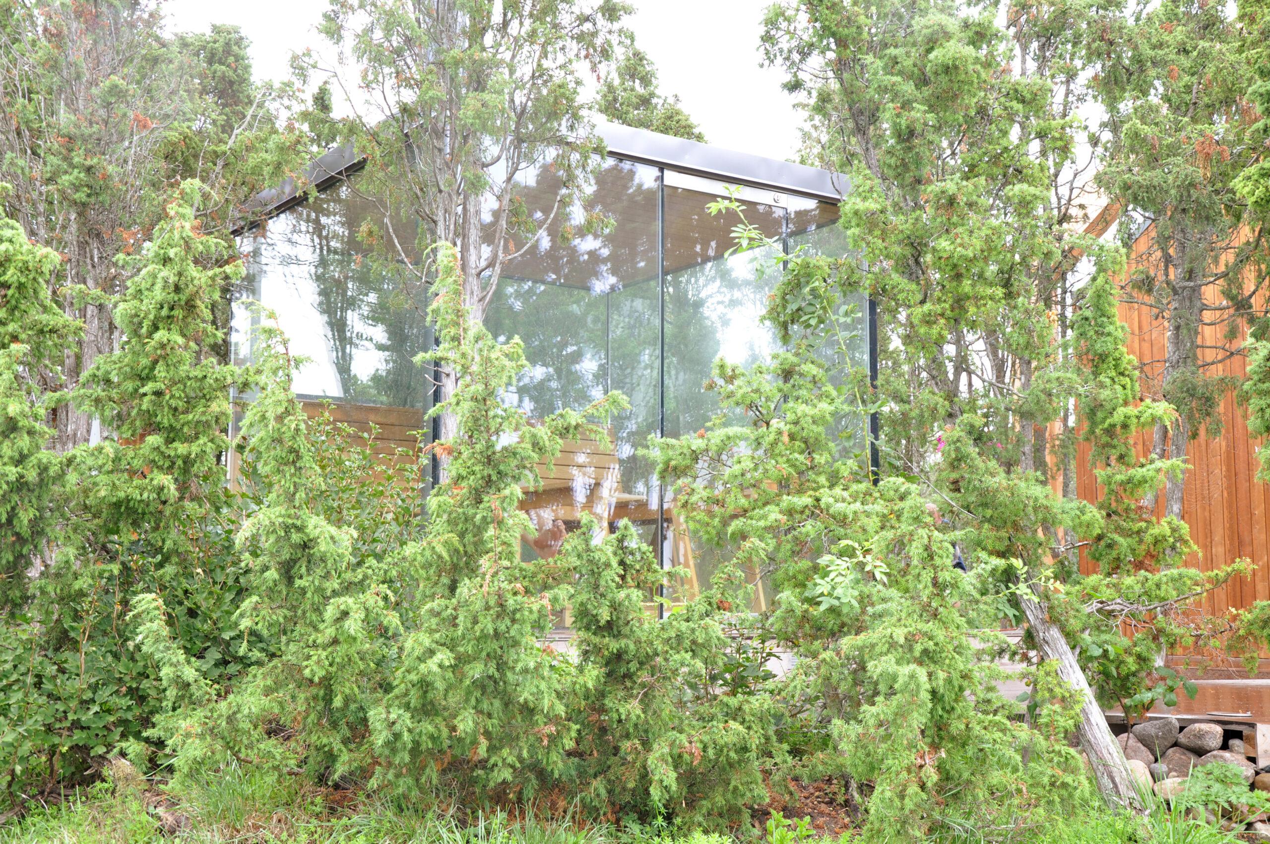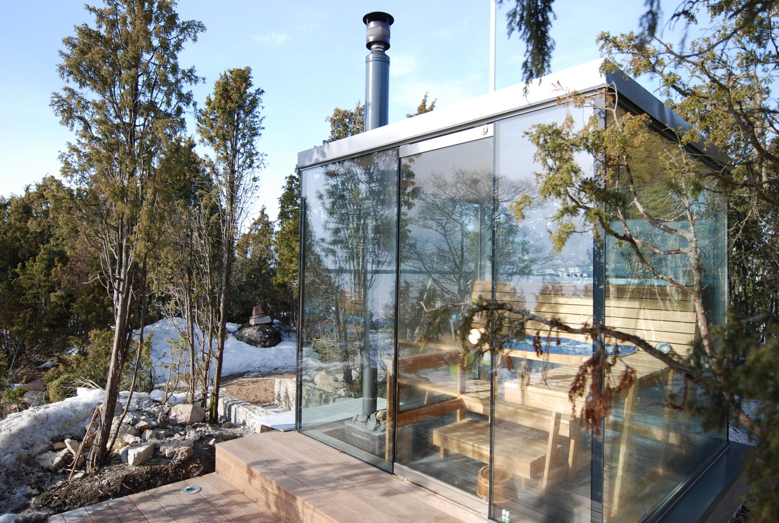Kandvate klaasist seintega leiliruum on mitmeti eksperimentaalne. Selle loomisprotsessi käigus maandati kõigepealt põhjused, miks hoone sellisel kujul ei toimivat, seejarel leiti koostöös mitmete tehniliste spetsialistidega lahendused, kuidas need ületada, ning lõpuks projekteeriti ja ehitati leiliruum valmis. Idee sellise lahenduse funktsionaalsest toimivusest, mis esialgu rajanes vaid arhitektide sisetundel, leidis reaalsuses kinnitust.
